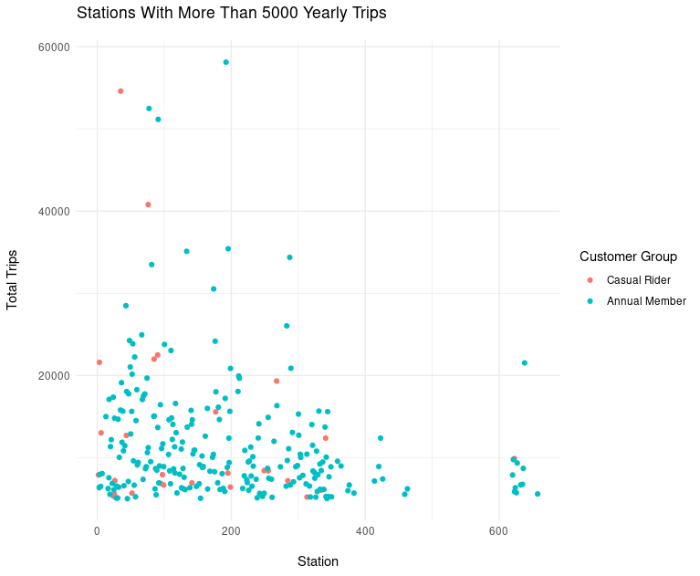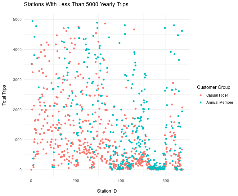 The marketing campaign should focus on stations popular with casual riders. We know from our analysis that the stations which casual riders use differ from annual riders. Targeting the top stations would result in targeting predominately existing annual riders. Instead, focusing on stations popular with casual riders is likely to be more effective.